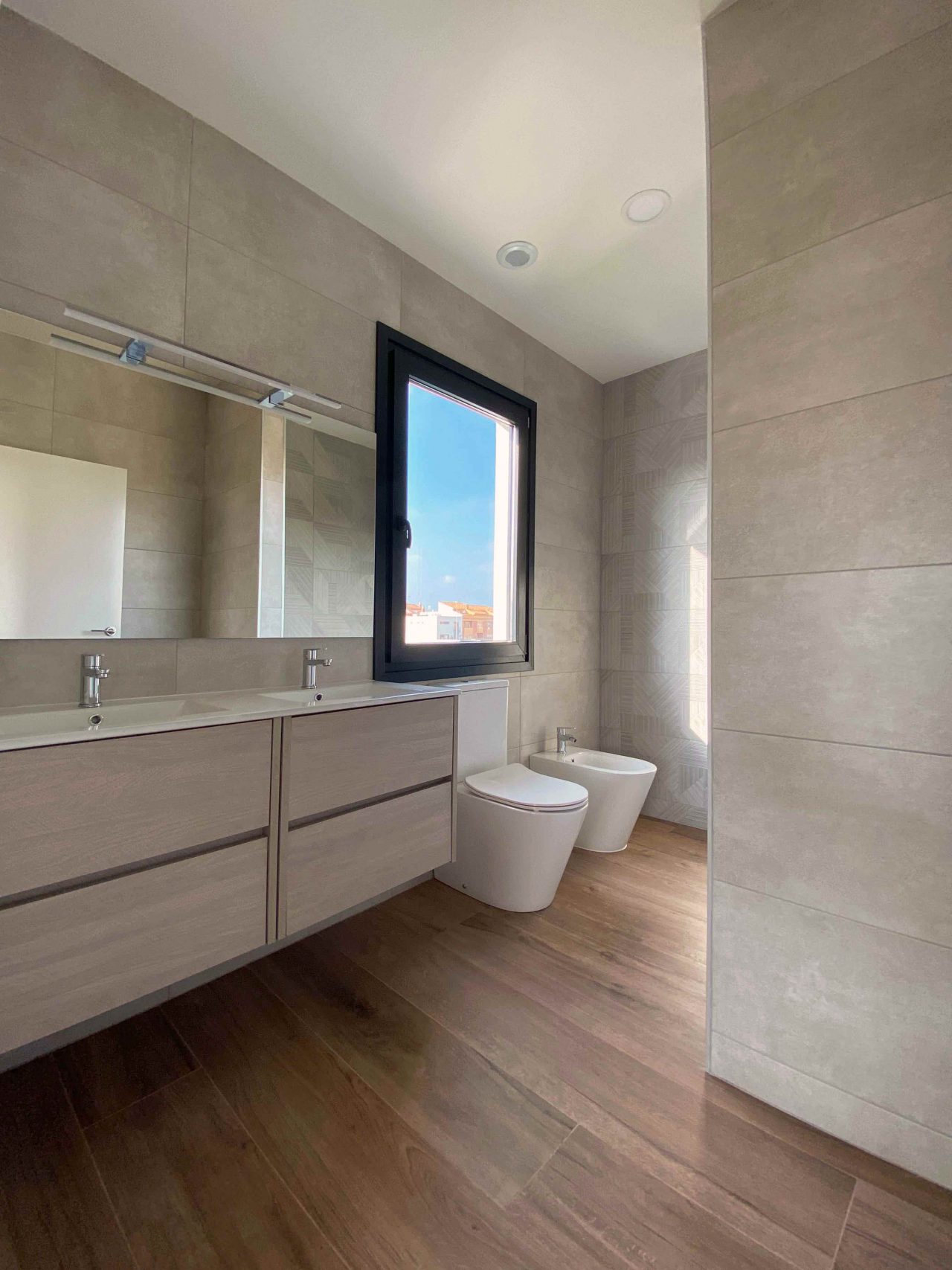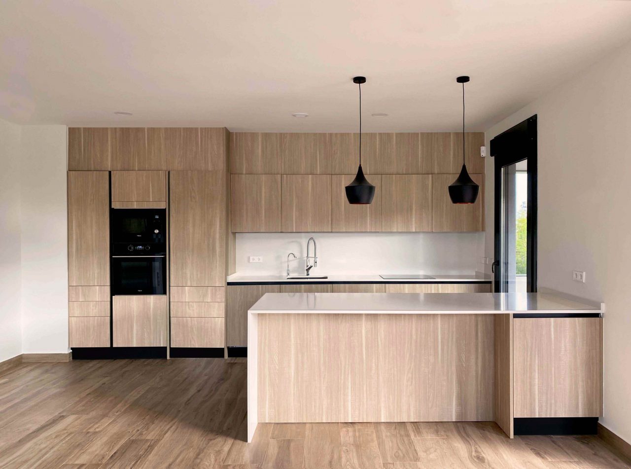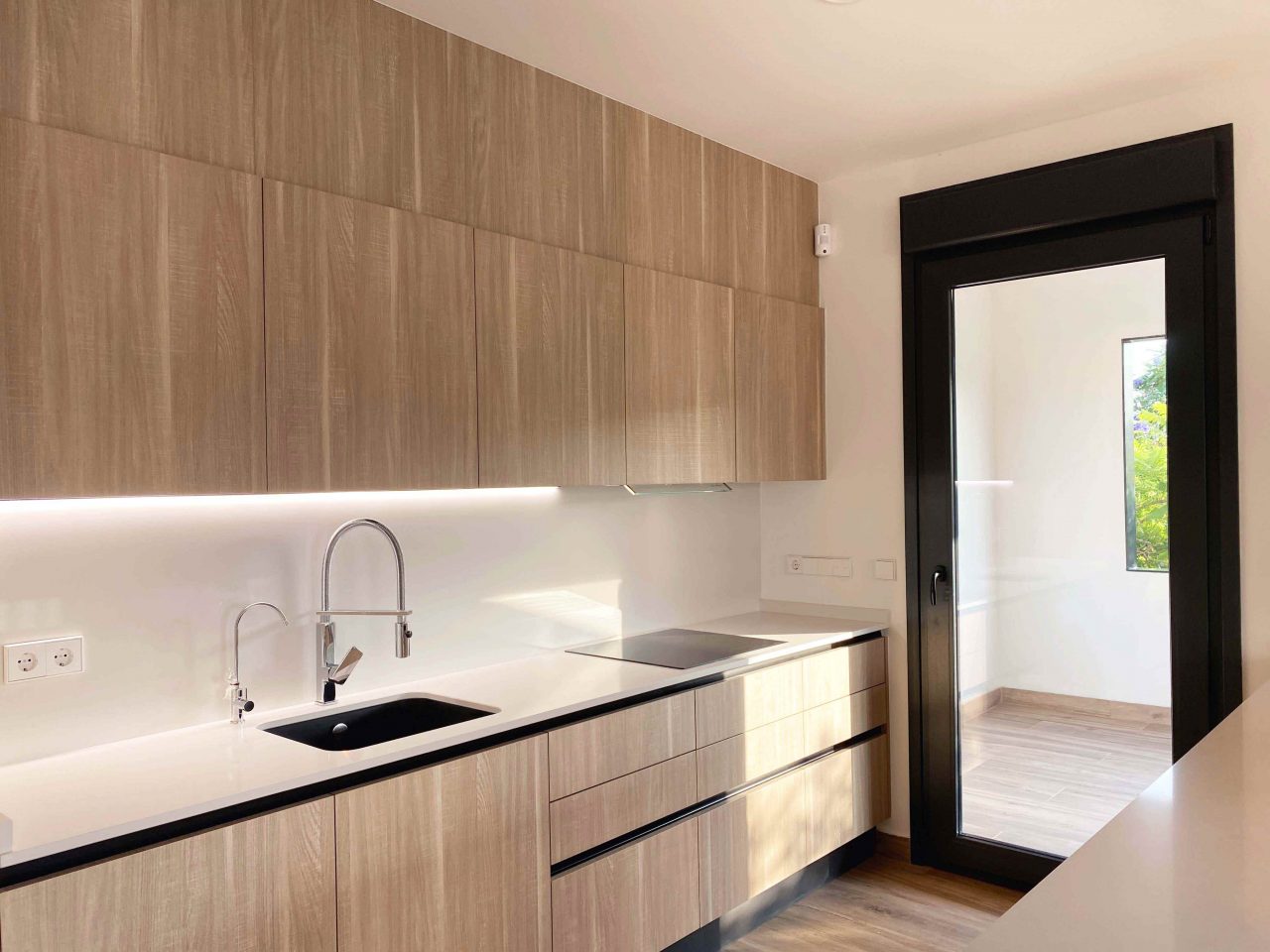 La vivienda se ubica en una parcela en esquina orientada al sur-oeste. El programa funcional es complejo, ya que requiere de una gran sala de entrenamiento diáfana con acceso independiente al resto de la vivienda. Para resolver este requisito, se decide ubicar esta estancia en planta baja y el resto de la vivienda en planta primera. La vivienda se concibe con un volumen prismático en forma de “L”, con dos amplias terrazas en el acceso y en el estar-comedor que se proyectan como un vaciado del volumen de la vivienda. Esto permite estar a cubierto en las terrazas y una protección solar que se combina con lamas verticales en la orientación oeste.